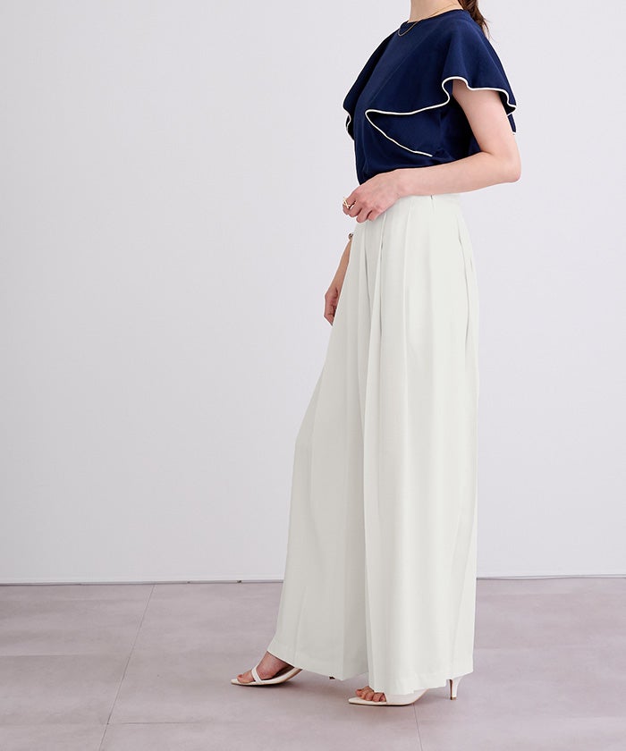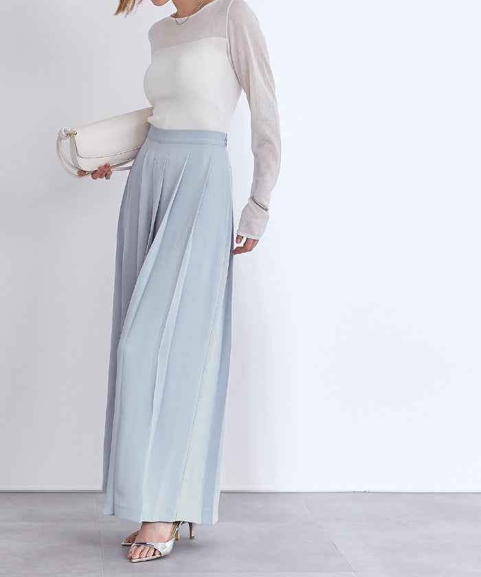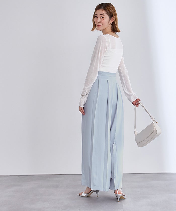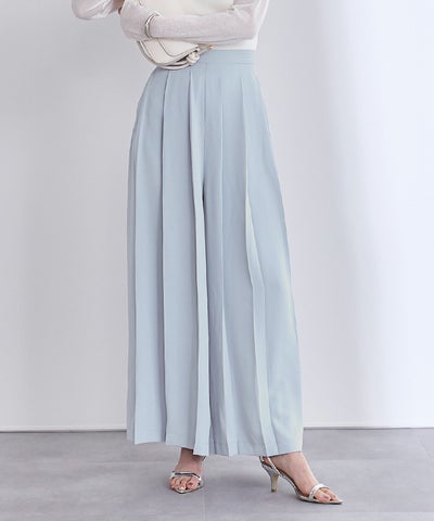 落ち感が上品なプリーツの入ったワイドパンツ。