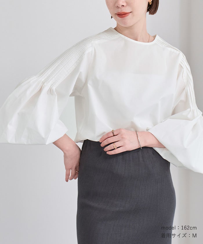 ・袖は程よくボリュームがありふんわり、女性らしく合わせられます。