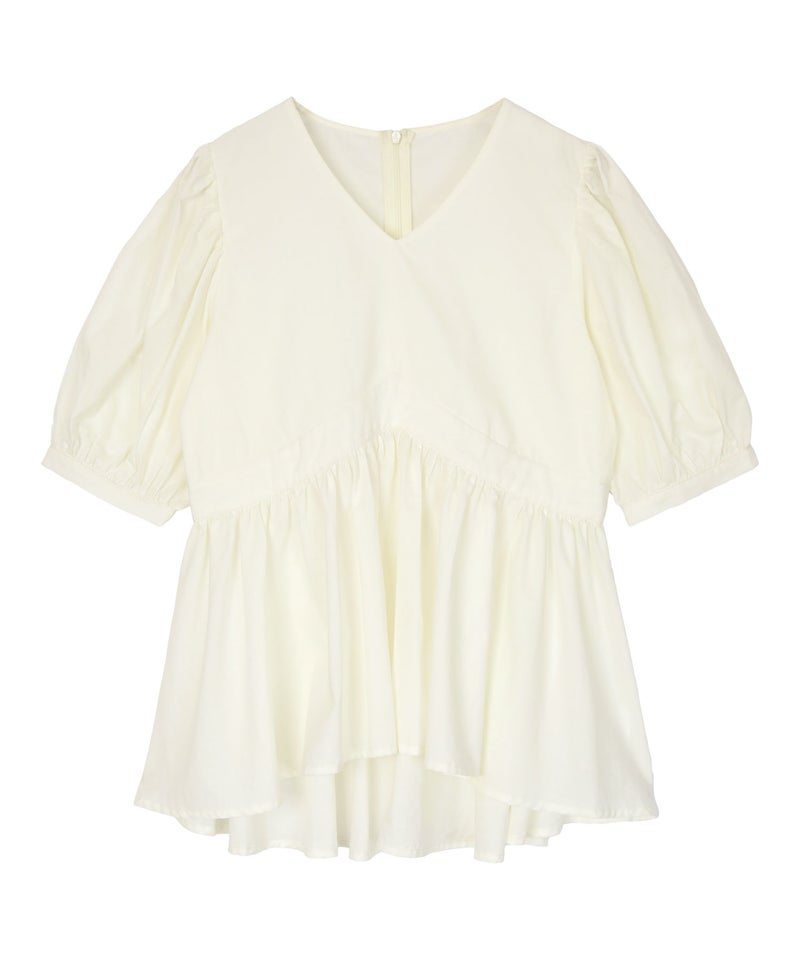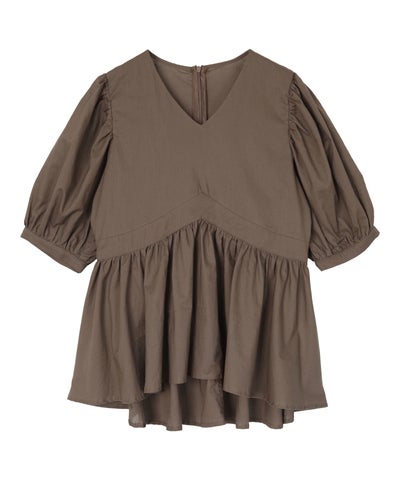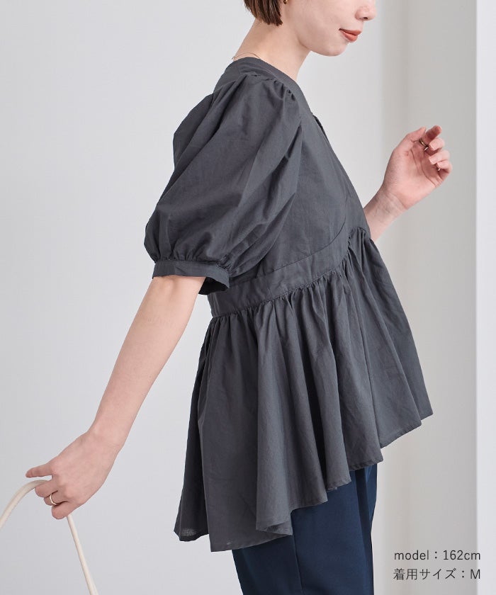 バストとウエストは程よくフィットし、ウエストから広がるペプラムシルエットが