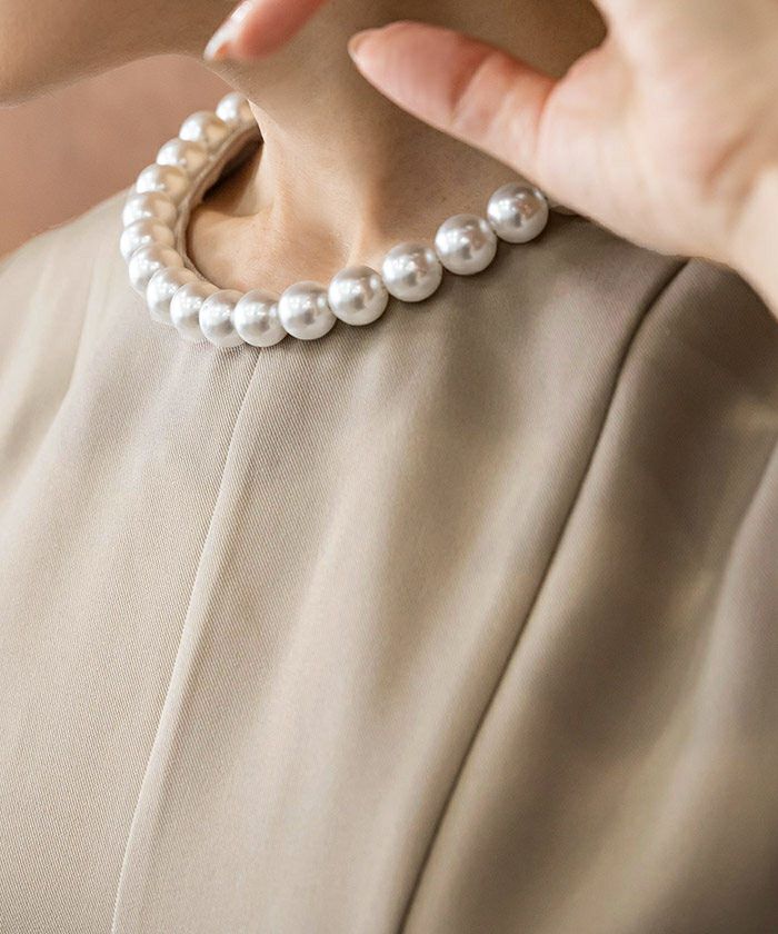 存在感のあるパールデザインでアクセサリー無しでも華やかな印象に。