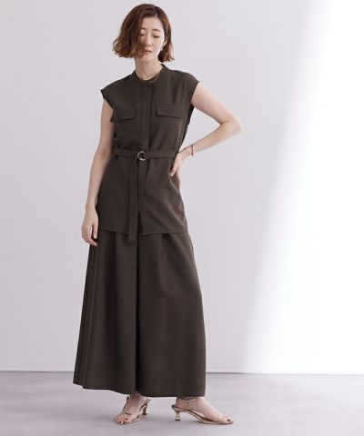 共布のベルト付きなので、ウエスト部分を絞ったスタイリングも可能。