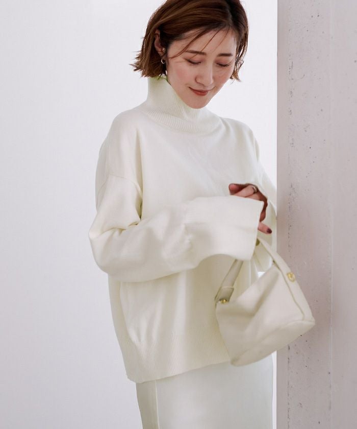 コットンウールブレンドで秋口から冬まで活躍するハイネックニット。