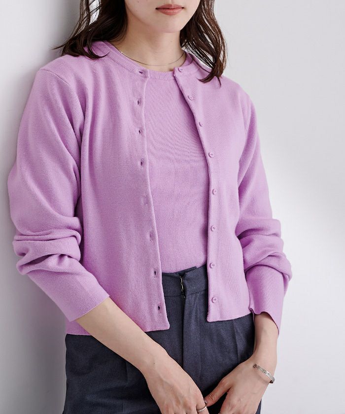 アンサンブルで着られるカーディガンと合わせるのもおすすめです。