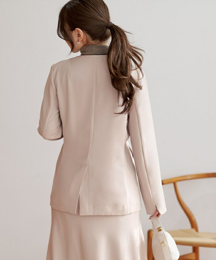 ノーカラーですっきり見えする一枚。