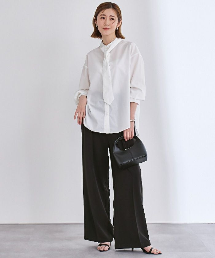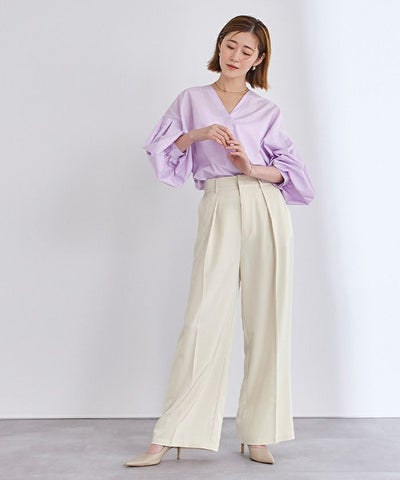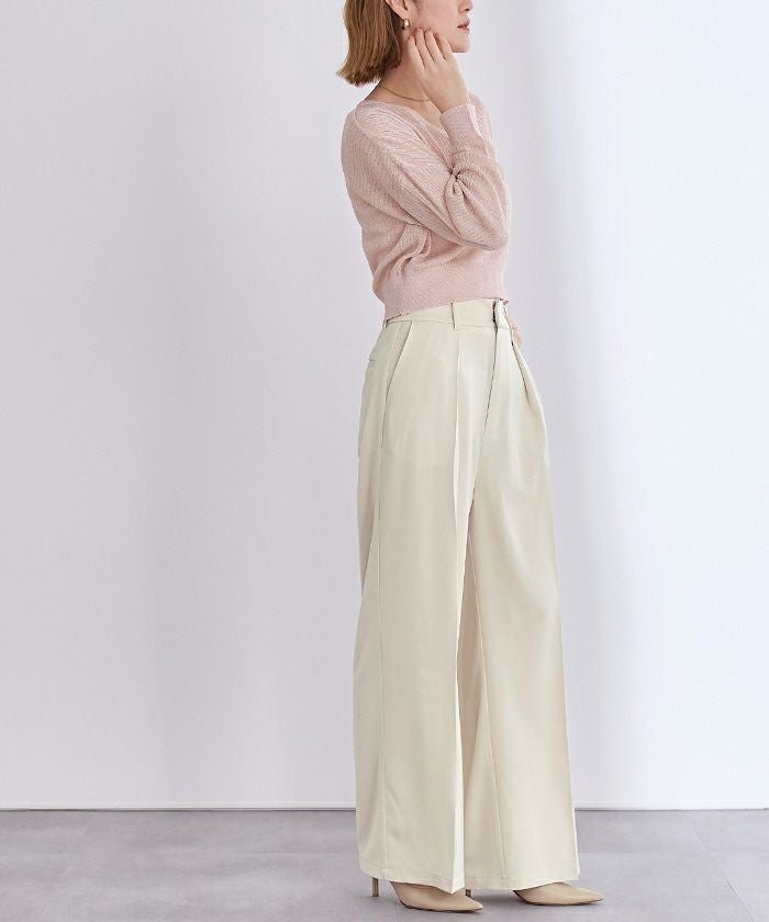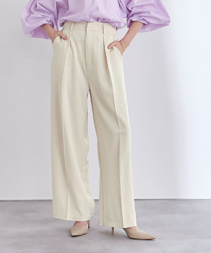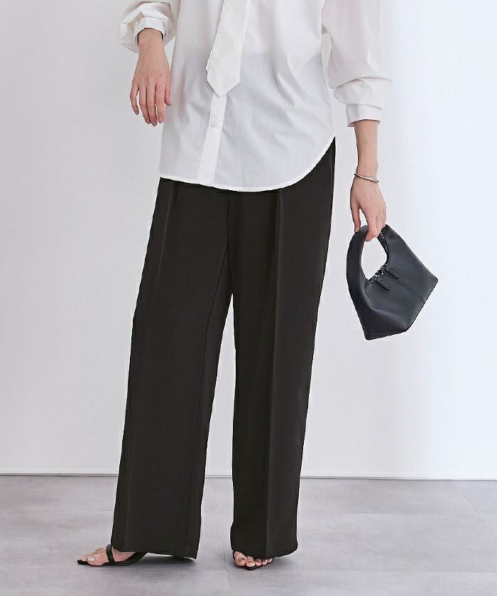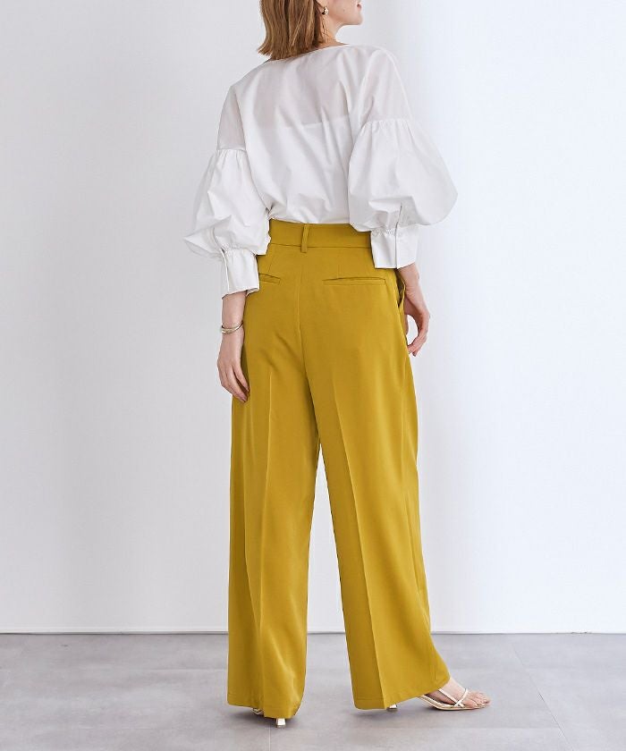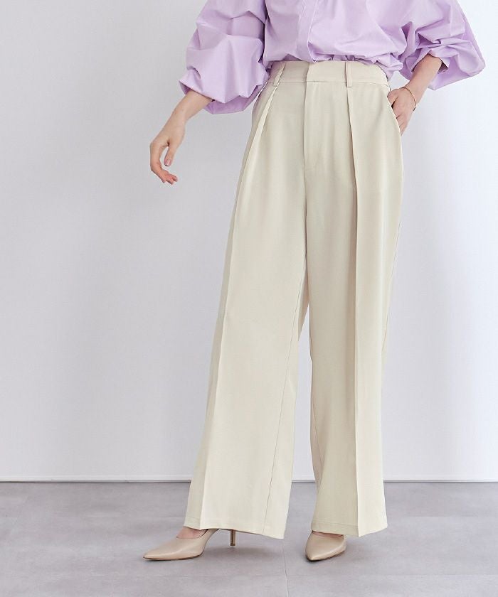 美シルエットで脚長効果も抜群のワンタックハイウエストワイドパンツ。