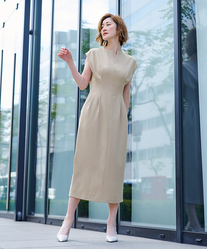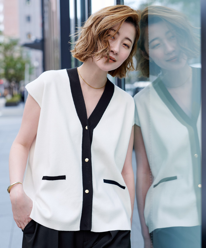 着用 / サイズ:M カラー:グレージュ、ダークネイビー