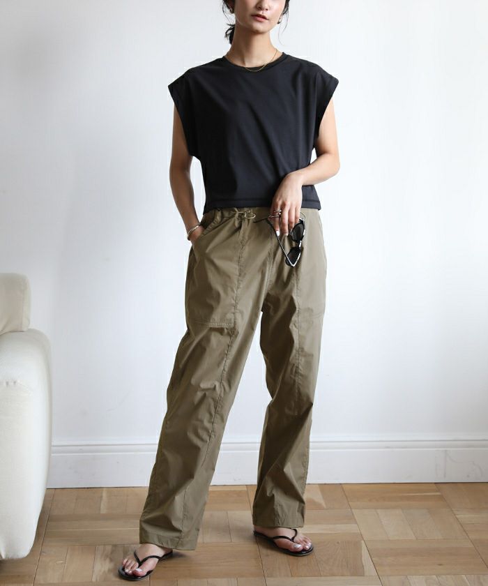 同素材のショート丈トップス(BDXU1528)と合わせてスタイリングを楽しめます。