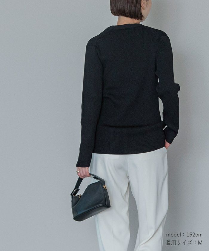 スッキリとしたキレイ見えするリブ編みで身体のラインにフィットするサイズ感にしました。