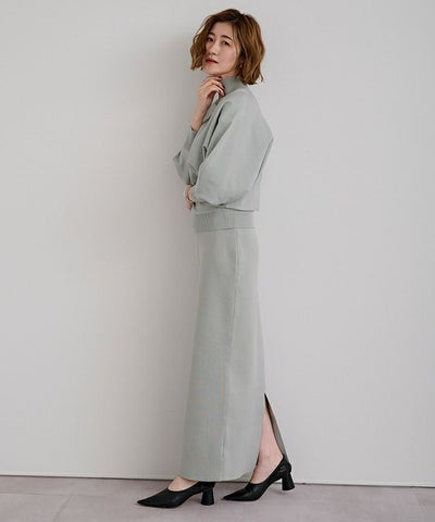 同素材のボトムとセットで着用できるドルマンスリーブニット。