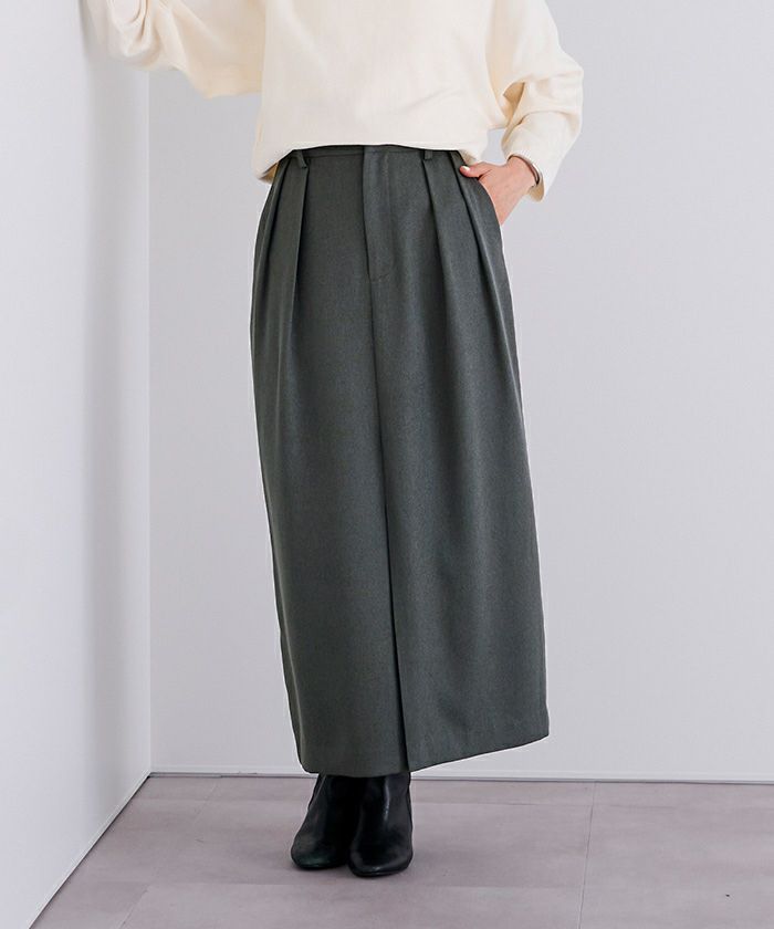 ストレートスカートですが、ウエストにタックが入っているので着やすいサイズ感に仕上げました。