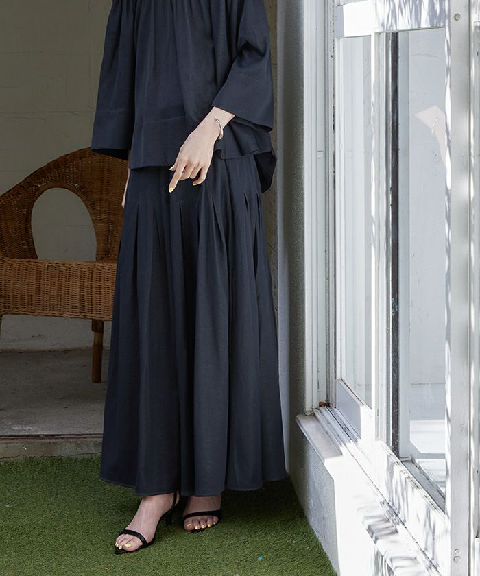 ウエストからヒップまでタックが入った仕上がりで