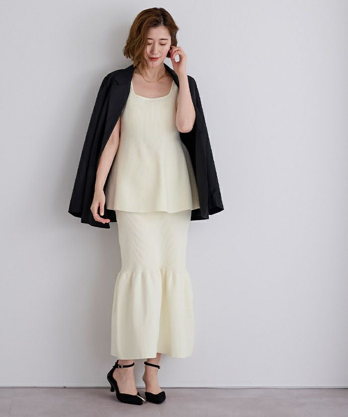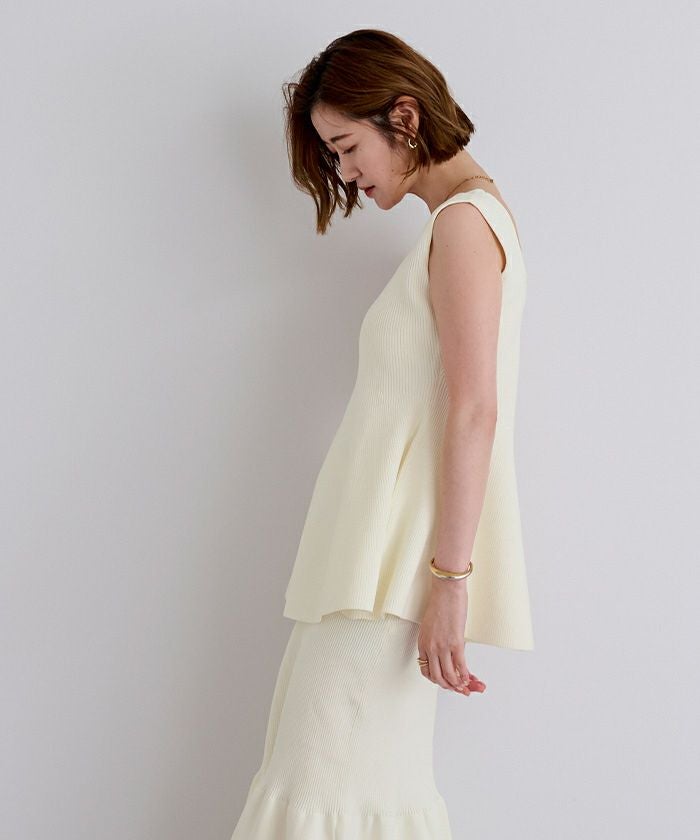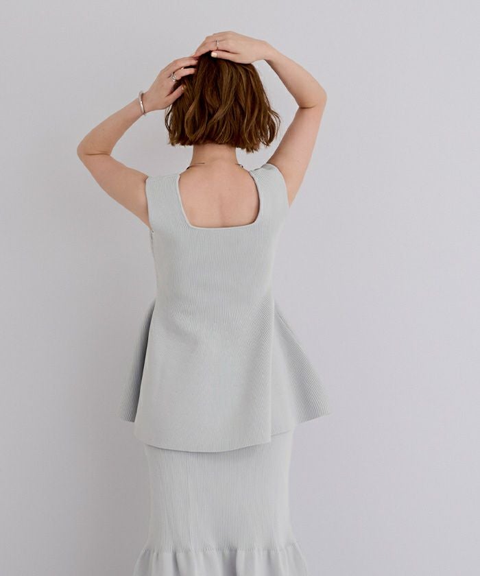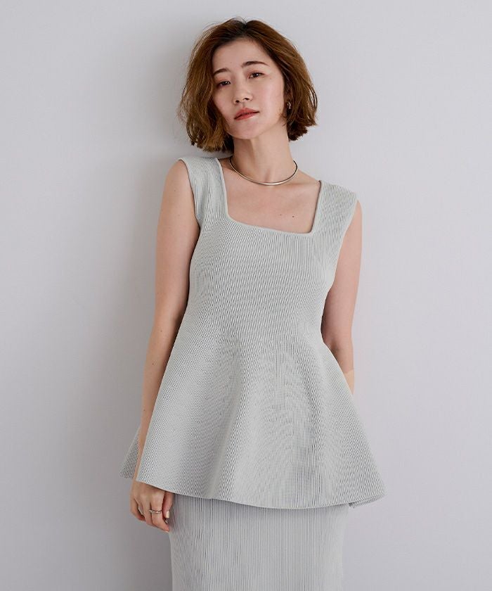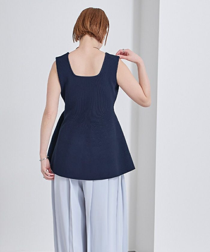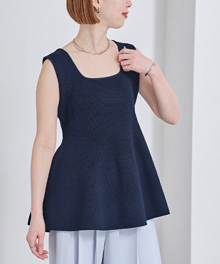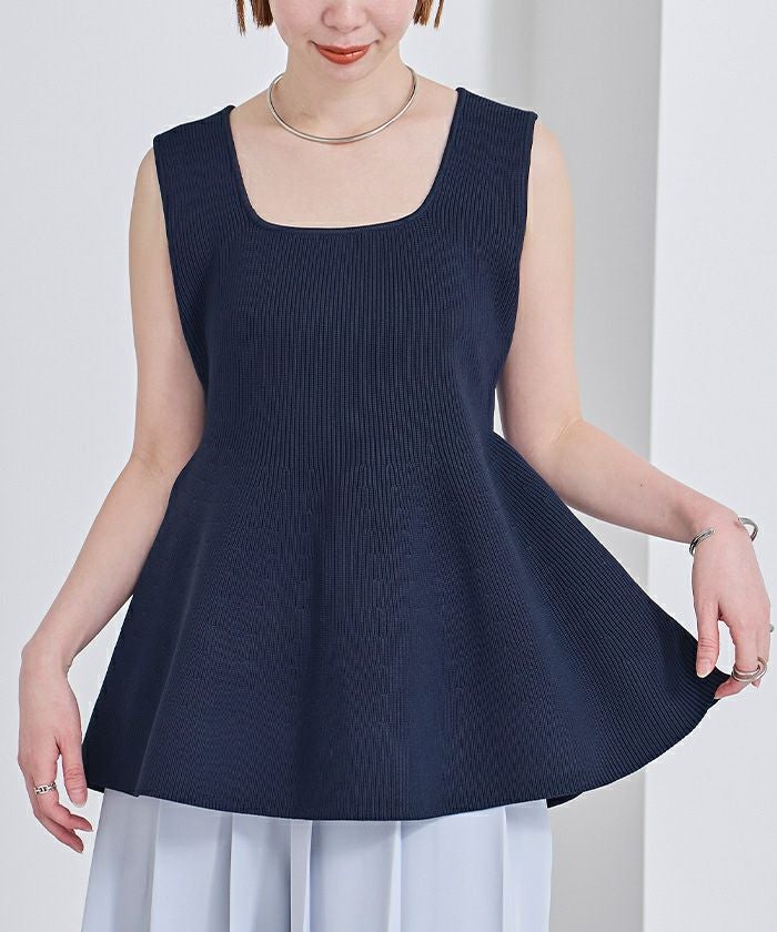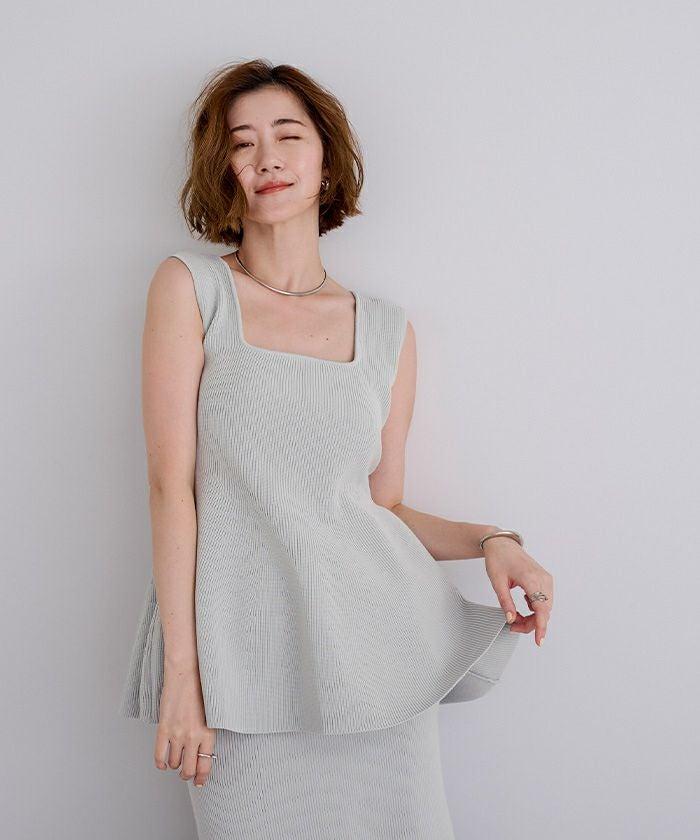 前後2wayスポンディッシュスクエアネックペプラムニット