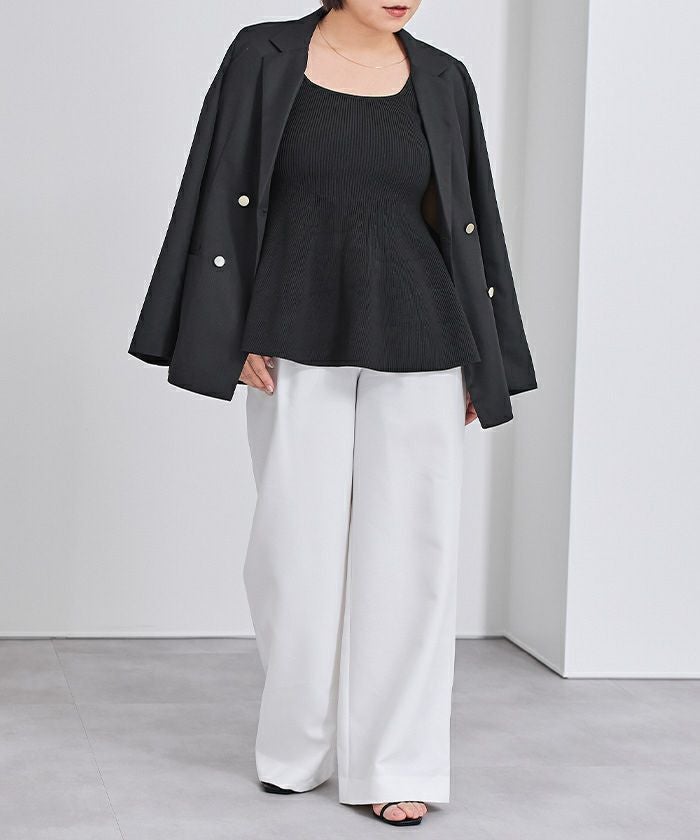 ウエストから裾にかけて広がるペプラムシルエットに仕上げており