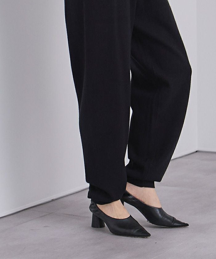 ほどよい厚みのある編地で脚のラインを拾いにくく、締め付け感の少ない裾リブのおかげで、快適に着用いただけます。