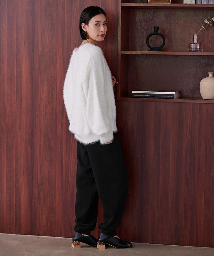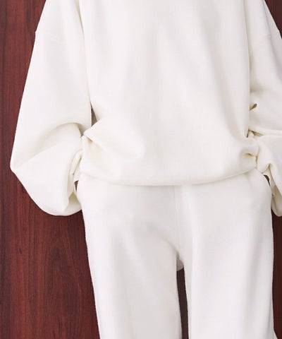 同素材シリーズのスウェットライクオーバーサイズニットと合わせてセットアップでもおすすめです。