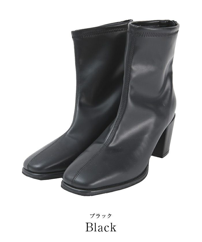 4.5cmチャンキーヒールスクエアトゥショートブーツ