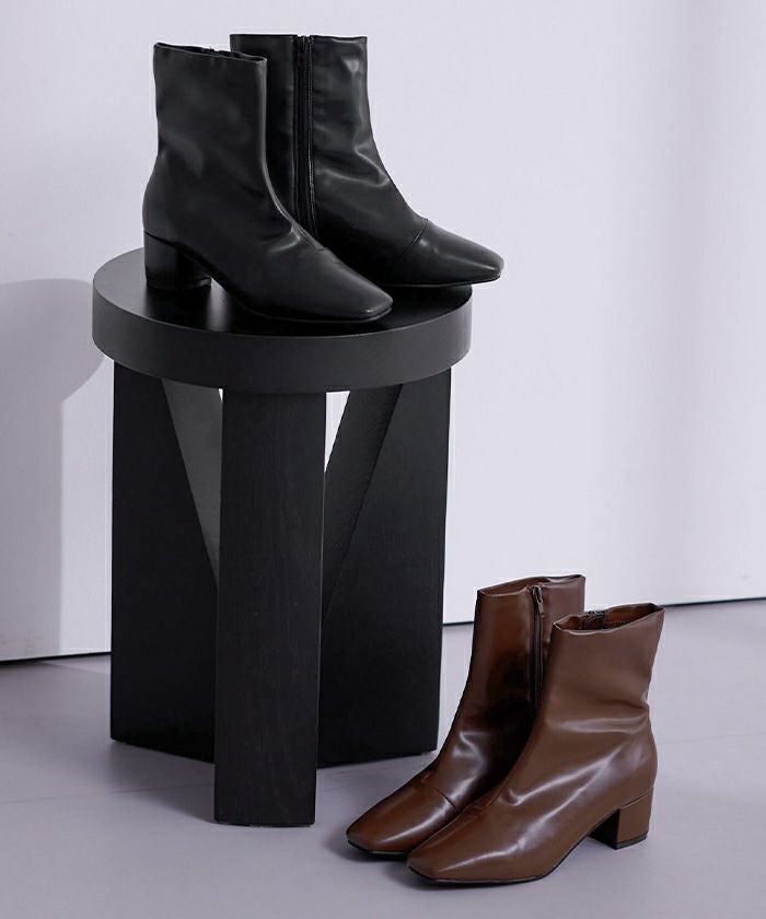 4.5cmチャンキーヒールスクエアトゥショートブーツ