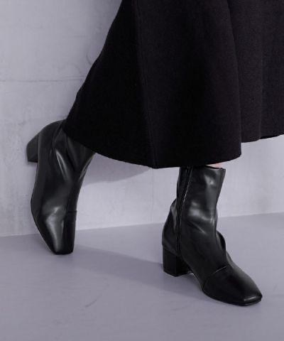 チャンキーヒールが大人可愛いスクエアトゥショートブーツ。
