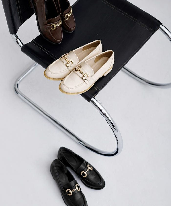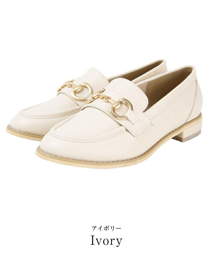 ゴールドのビットデザインが女性らしさも演出するローファー。