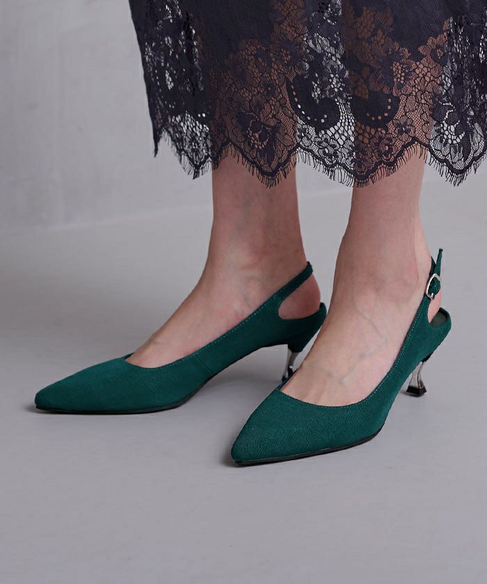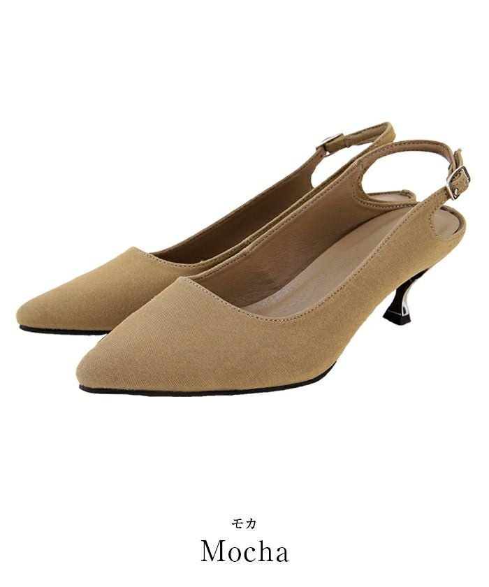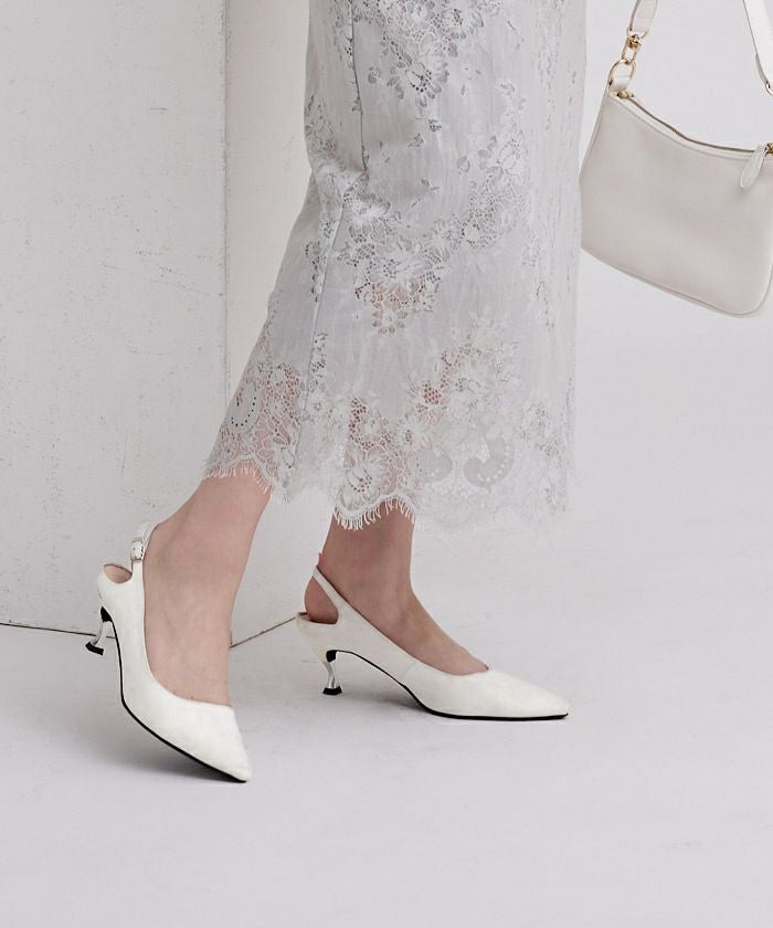 ポインテッドトゥがモードな印象でスリングバックが抜け感も演出してくれます。