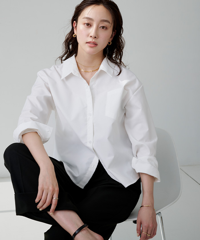 肩が大きく開いたアメリカンスリーブで華奢見え効果も期待できます。