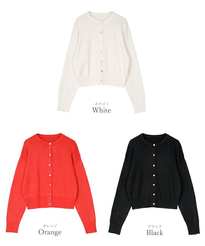 ・マットな質感のメタルボタンがポイントのニットカーディガン。