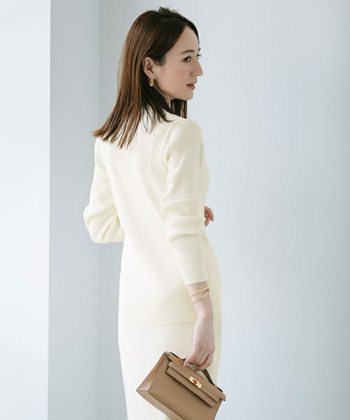 スッキリとしたキレイ見えするリブ編みで身体のラインにフィットするサイズ感にしました。