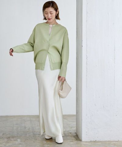 同素材のボトムとセットで着用できるカーディガン。