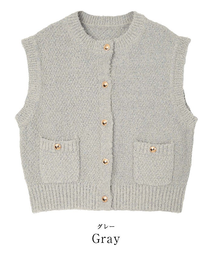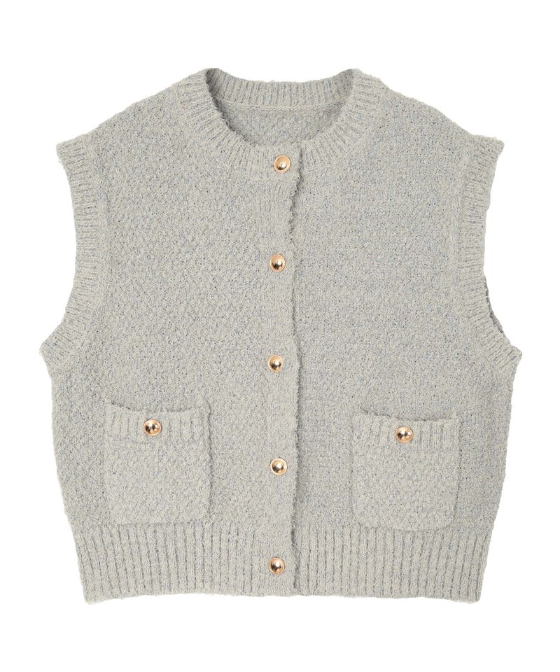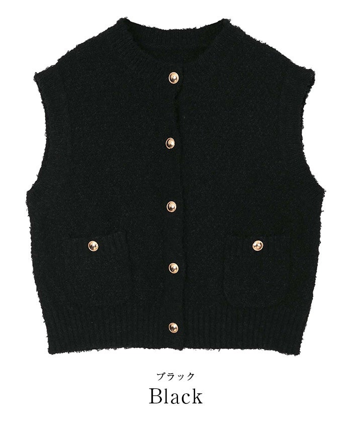ゴールド釦ニットベスト/カーディガン