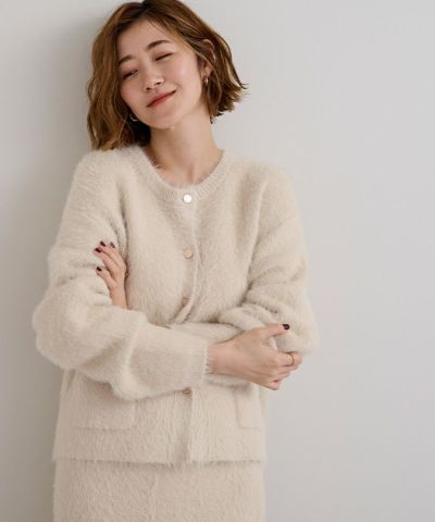 ふわっとした毛足のある表面感が魅力のニットカーディガン。
