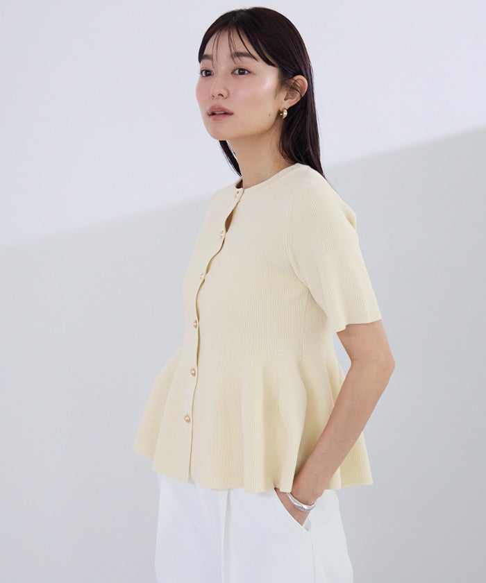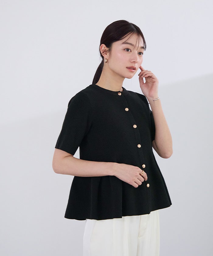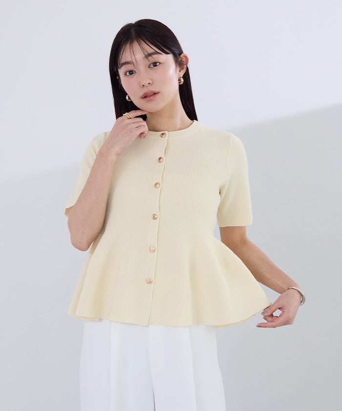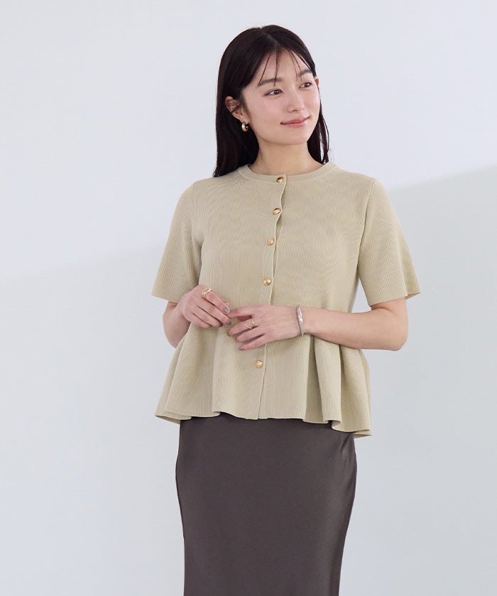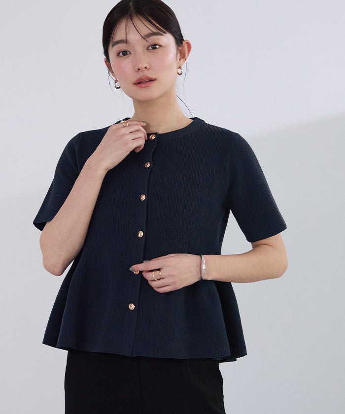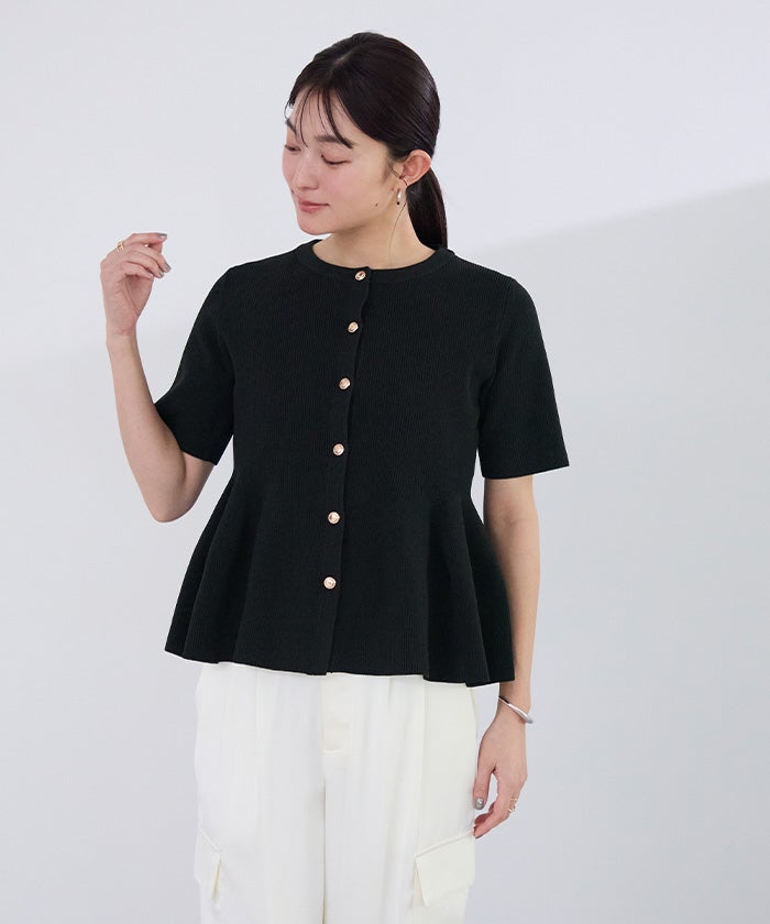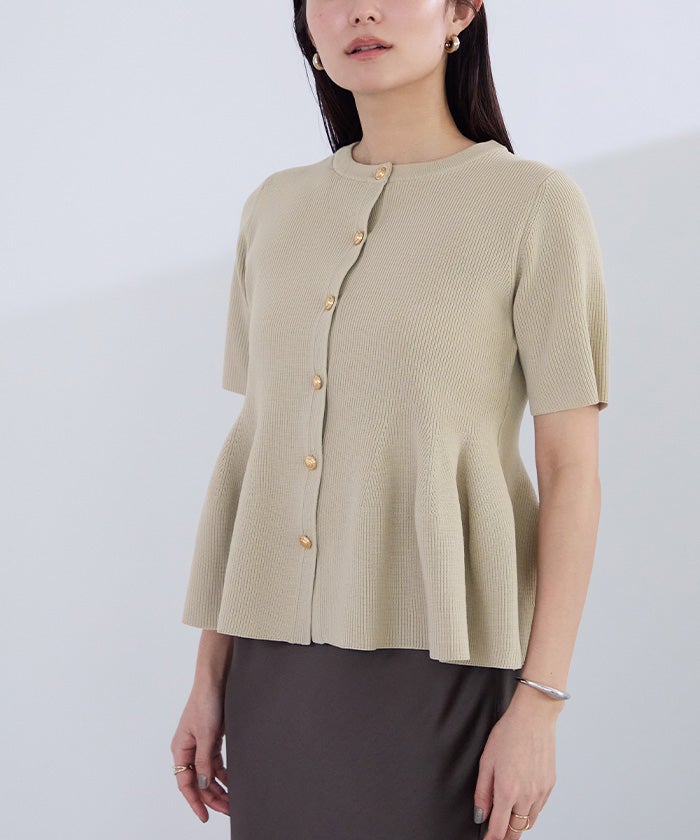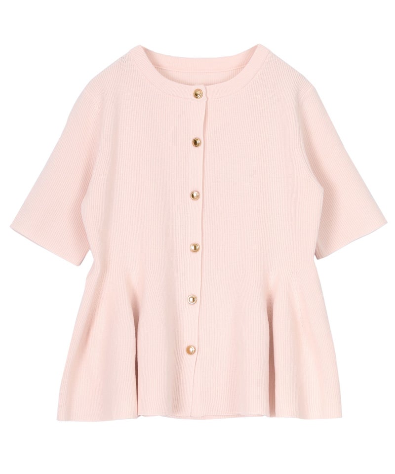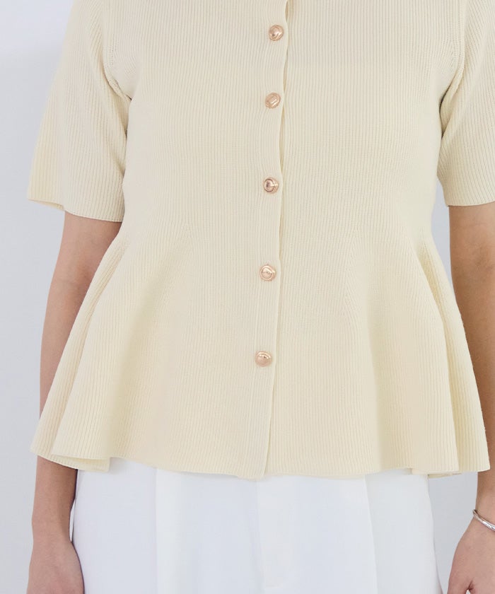 ゴールド釦半袖ペプラムニットカーディガン