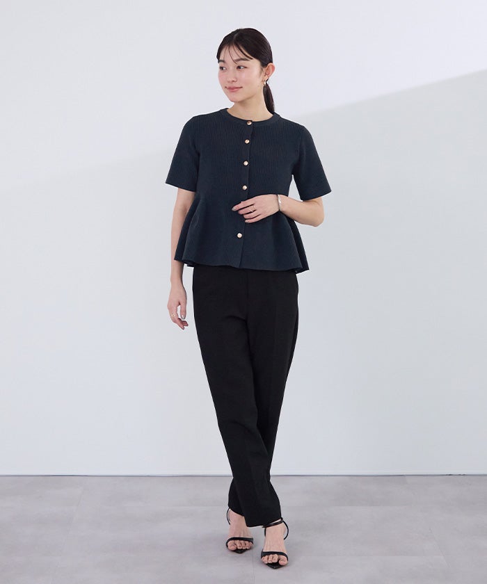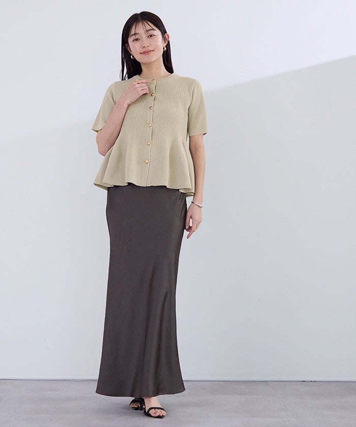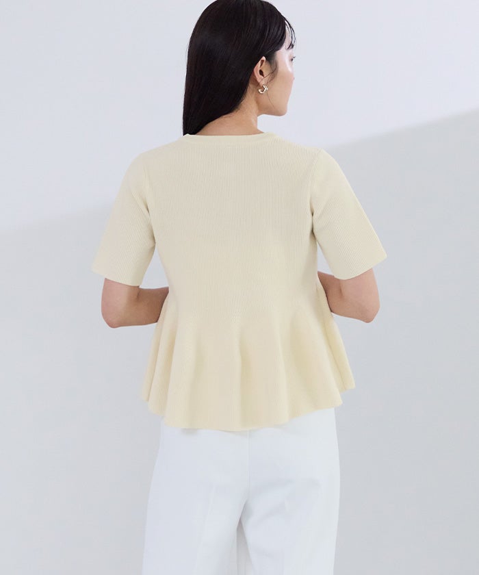 ウエストから広がるペプラムシルエットで、女性らしいメリハリのあるラインを演出します。