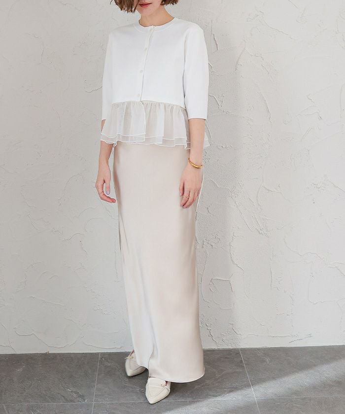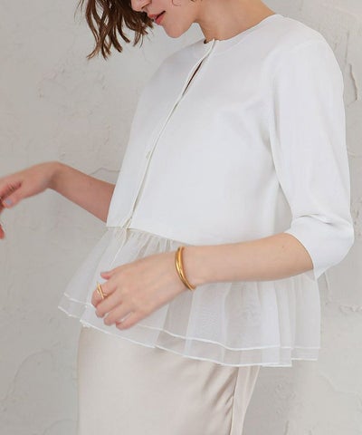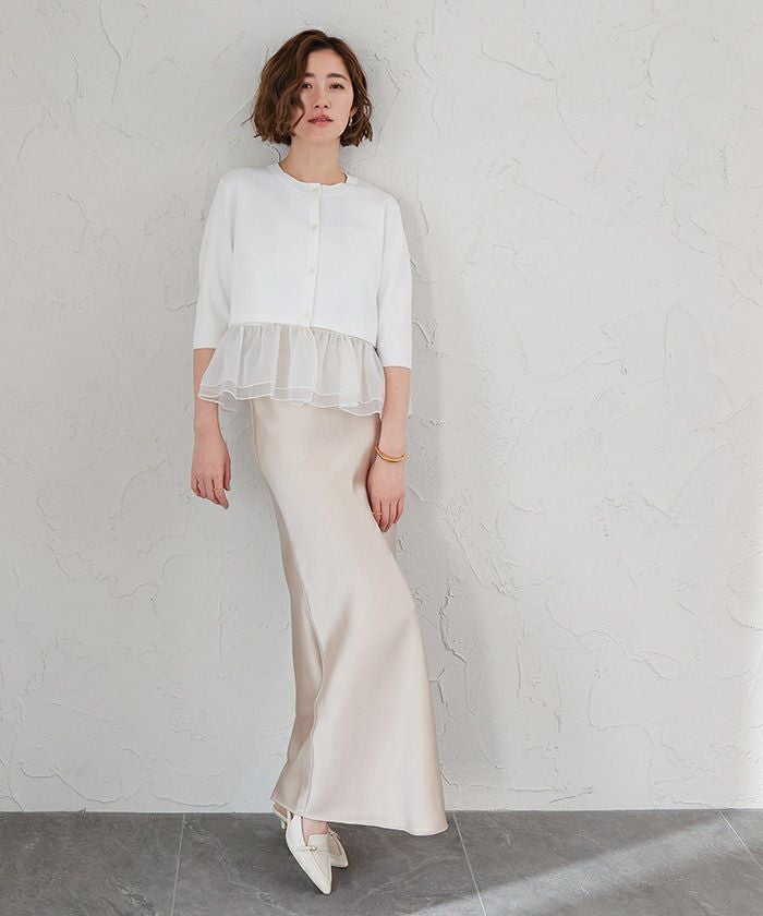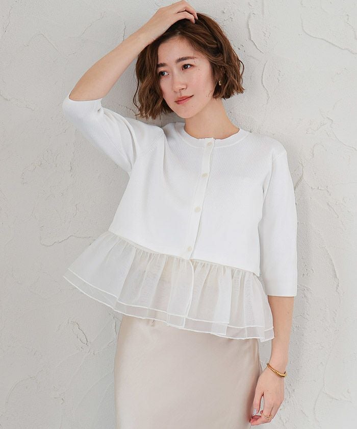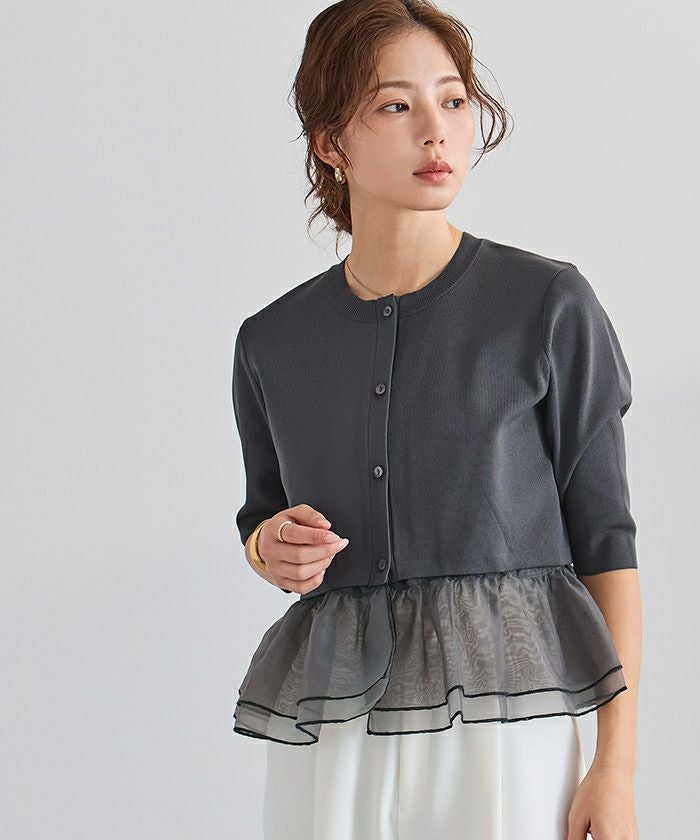 裾のシアー部分は取り外し可能で、気分やシーンに合わせてアレンジできるカーディガン。