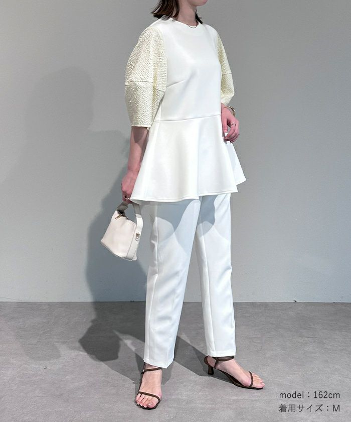 他の画像を見る 【八田真理子さんコラボアイテム】【セットアップ可能】【期間限定★2500均一】 ノースリーブバルーンペプラムトップス 定価 ¥ 6,589 のところ 価格 ¥ 2,500 税込 お気に入りに登録する