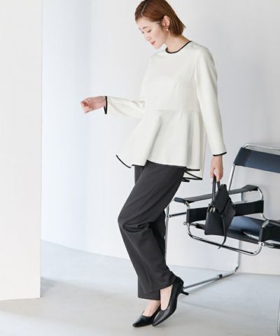 ふんわりとしたペプラムのシルエットが女性らしい一枚。