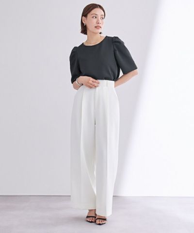ふんわりとしたタックスリーブで女性らしい印象に。