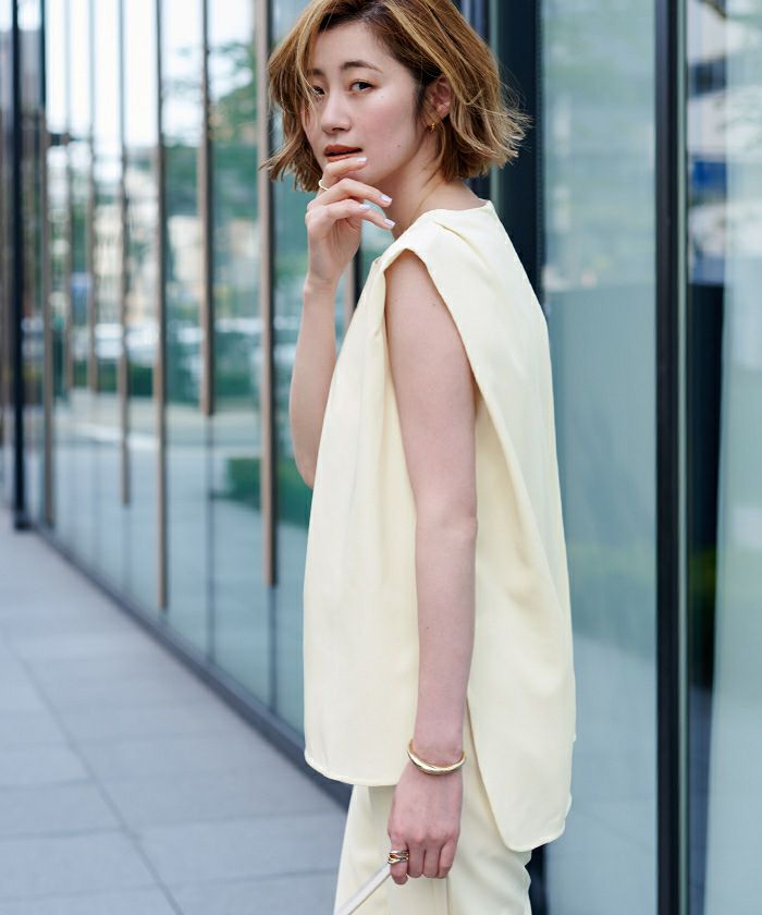 肩部分にタックが入っており、立体的なシルエットに。
