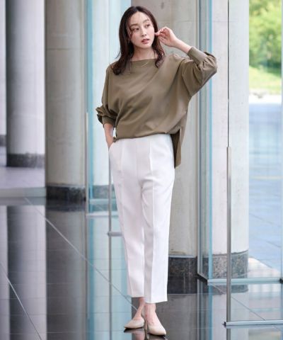 落ち感のある素材が女性らしくきれいめな印象を演出してくれます。