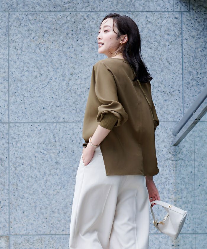 パンツ、スカート問わず合わせやすいので、お手持ちのボトムスでコーディネートが組みやすい一枚。