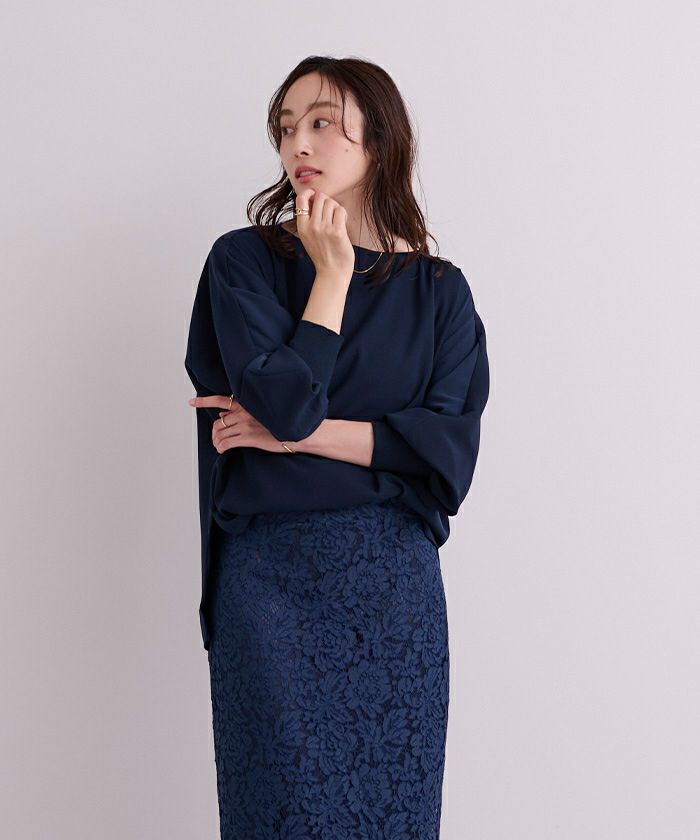 ドルマンスリーブで気になる二の腕もさり気なくカバー。