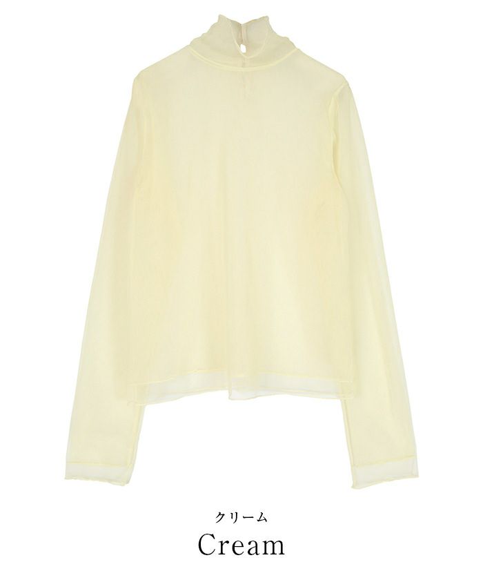 あまりないデザインで華やかに着られると思います。タートル部分の首の詰まりも気になりません。画像よりも肌の透けが出ると思います。