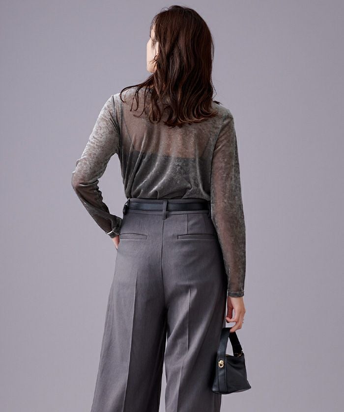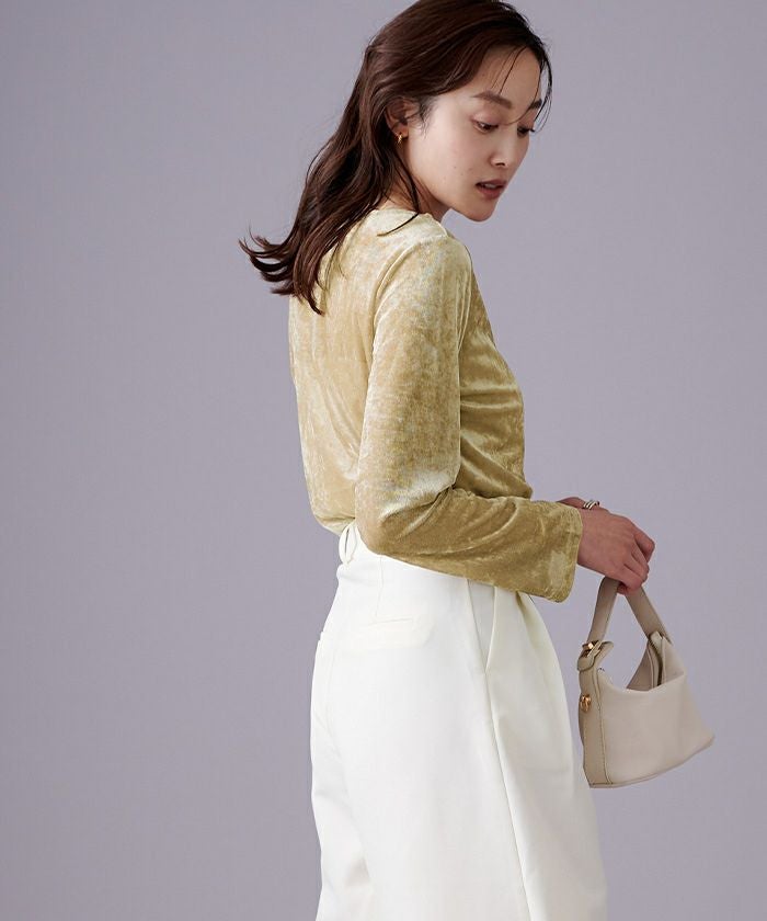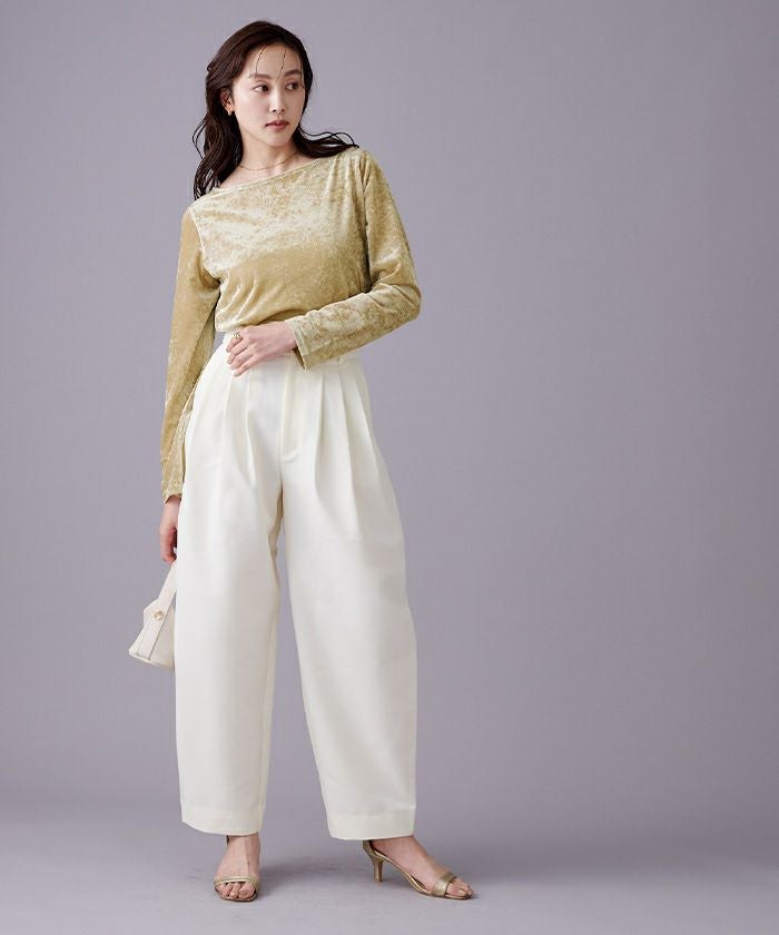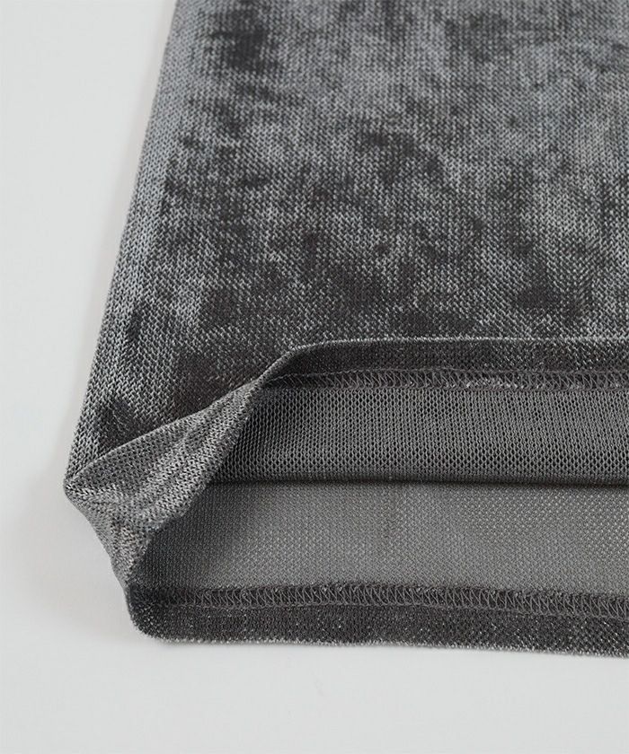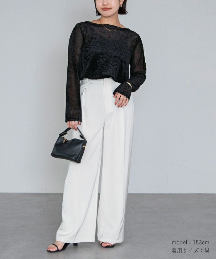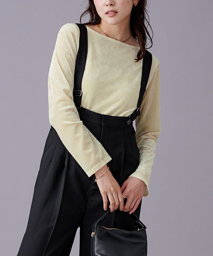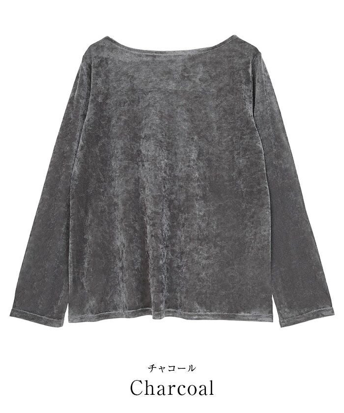 メッシュベロア素材のボートネックトップス。