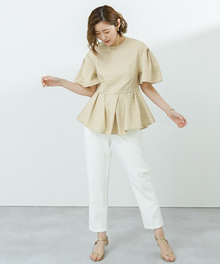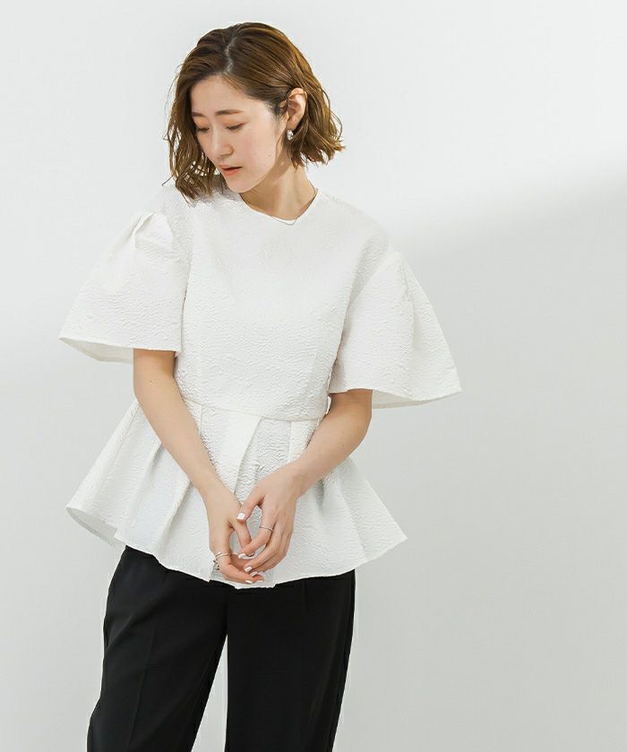 1枚でコーディネートが華やかになるふくれジャガードトップス。
