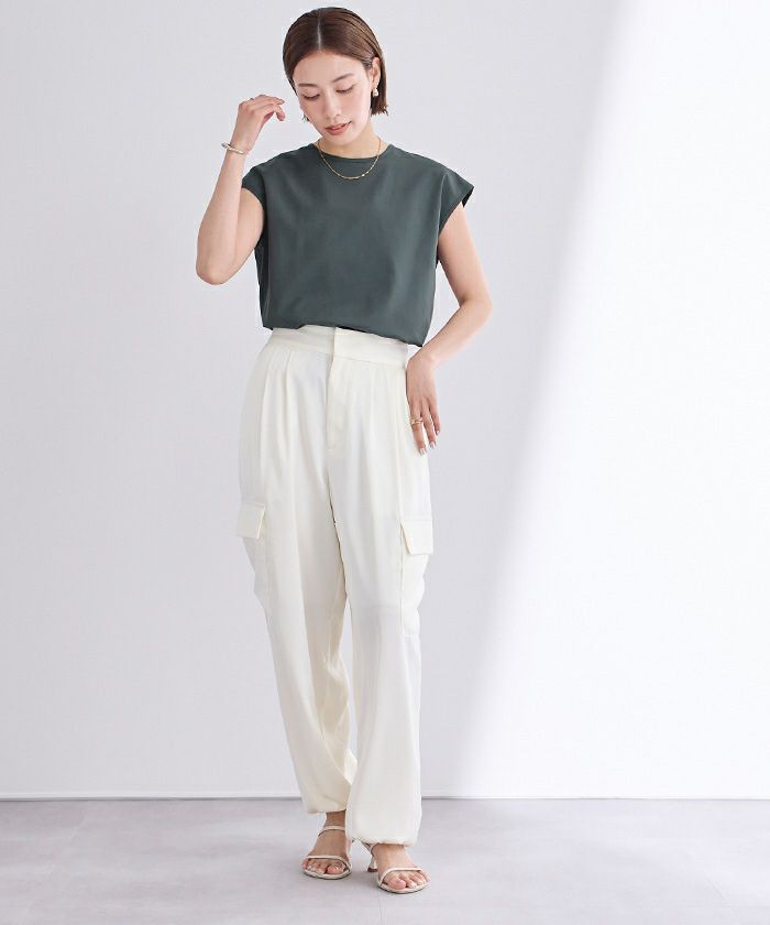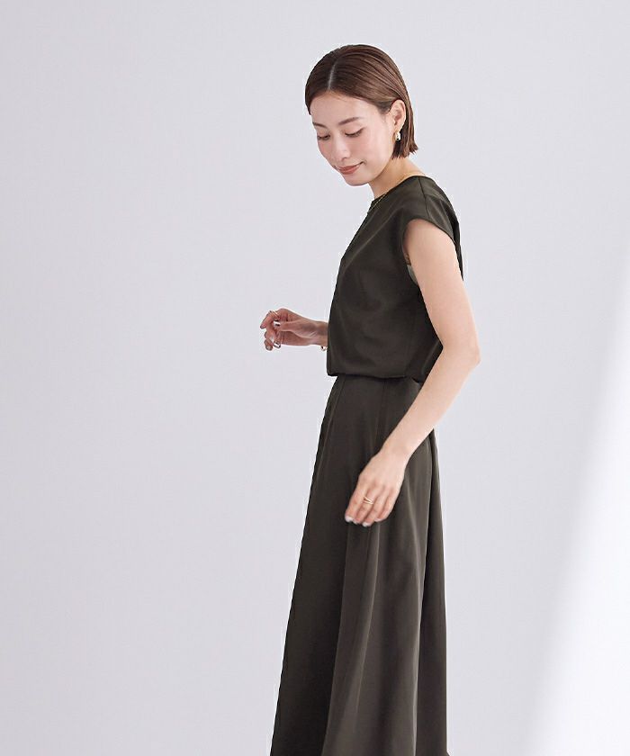 フレンチスリーブが涼し気で気になる二の腕をカバーできます。
