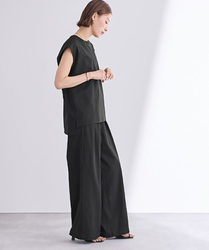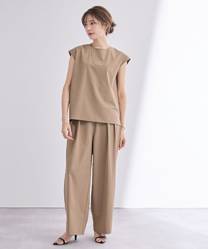 撥水ウエストゴムツータックワイドパンツ