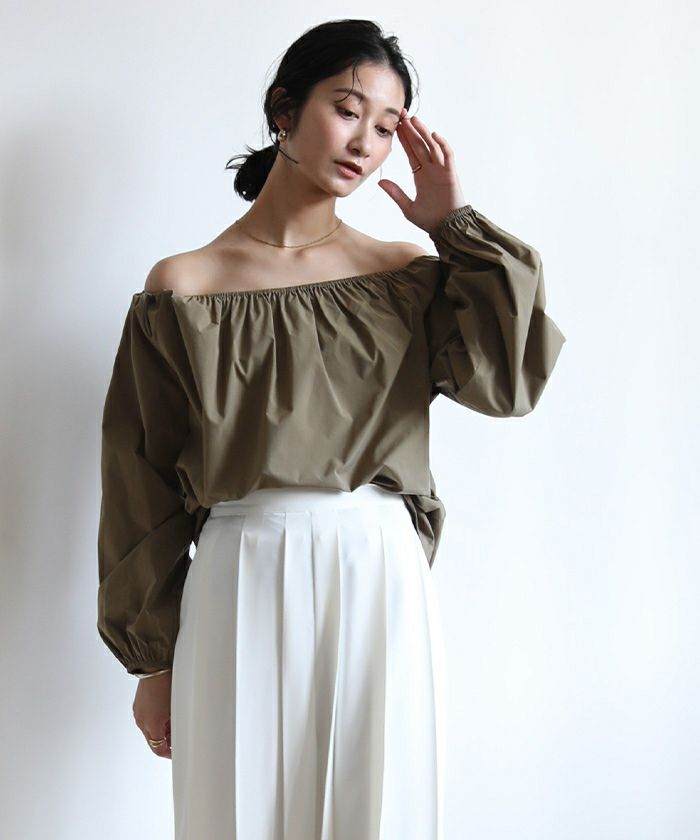 ・リゾート風にデコルテをきれいに見せるオフショルダーやワンショルダースタイルの着こなしや、きれいめにボートネックでのスタイリングも可能なマルチway仕様。