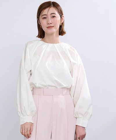 商品情報 襟ぐりにタックが入っておりふんわりとボリュームのあるトップス。
