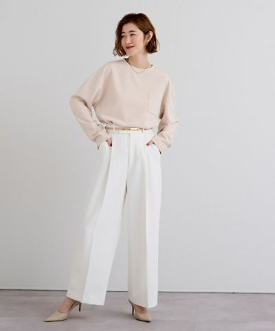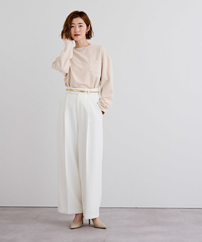 ほどよい伸縮性と上品な表情を兼ね備えた「カットジョーゼット」素材を使用。リラックスした着心地ながら、見た目はきちんと感のある仕上がりで、カジュアルになりすぎず、オン・オフ問わず活躍します。