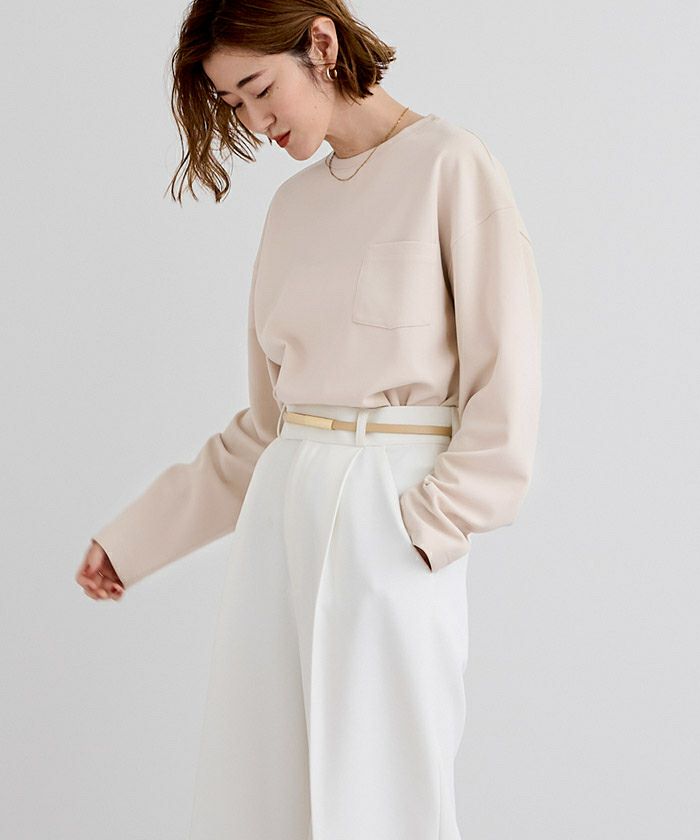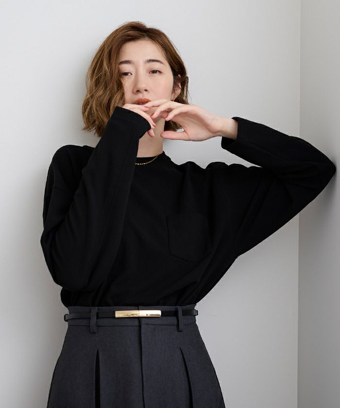 胸元にはさりげないポケットをプラス。シンプルすぎず、スタイルに程よいアクセントを添えてくれる一枚です。
