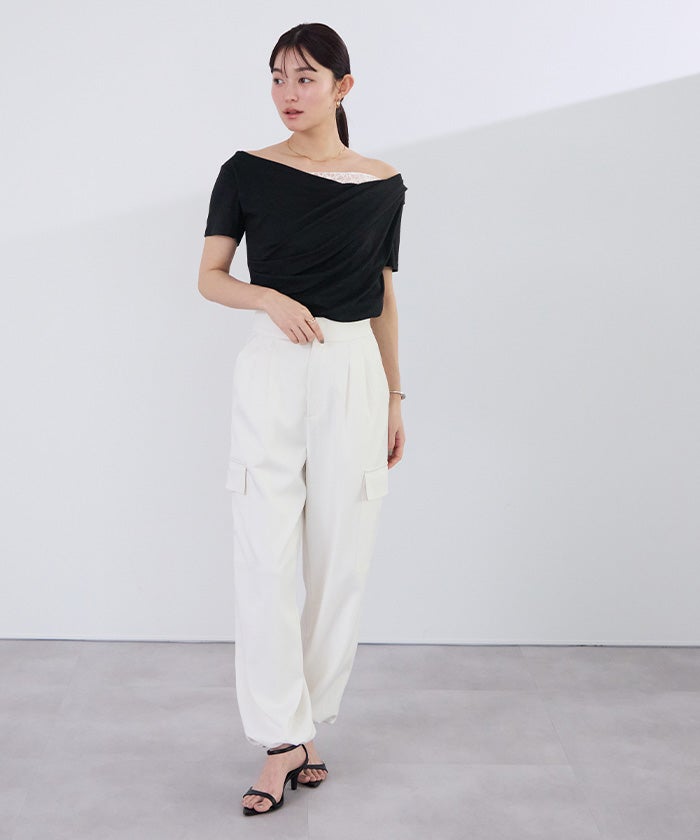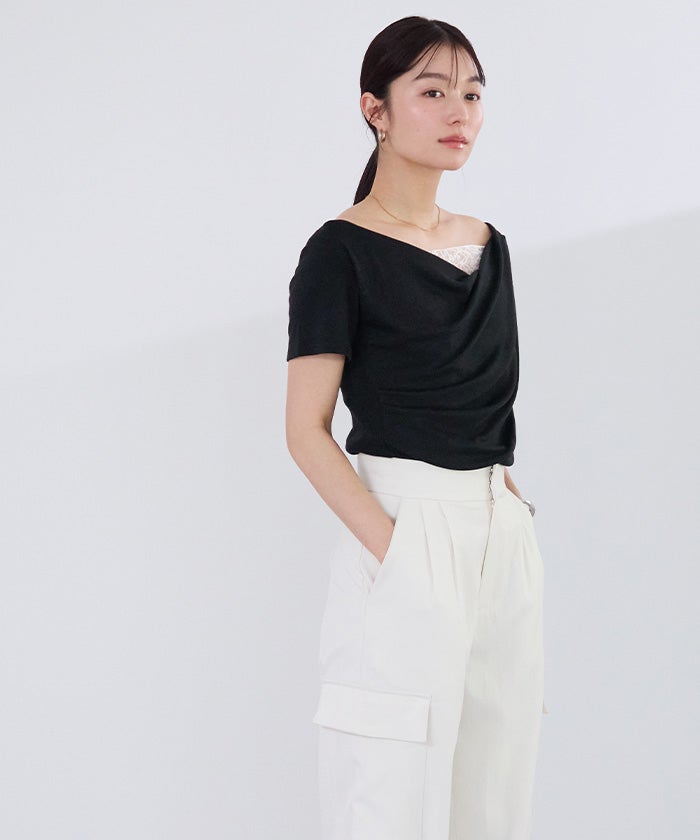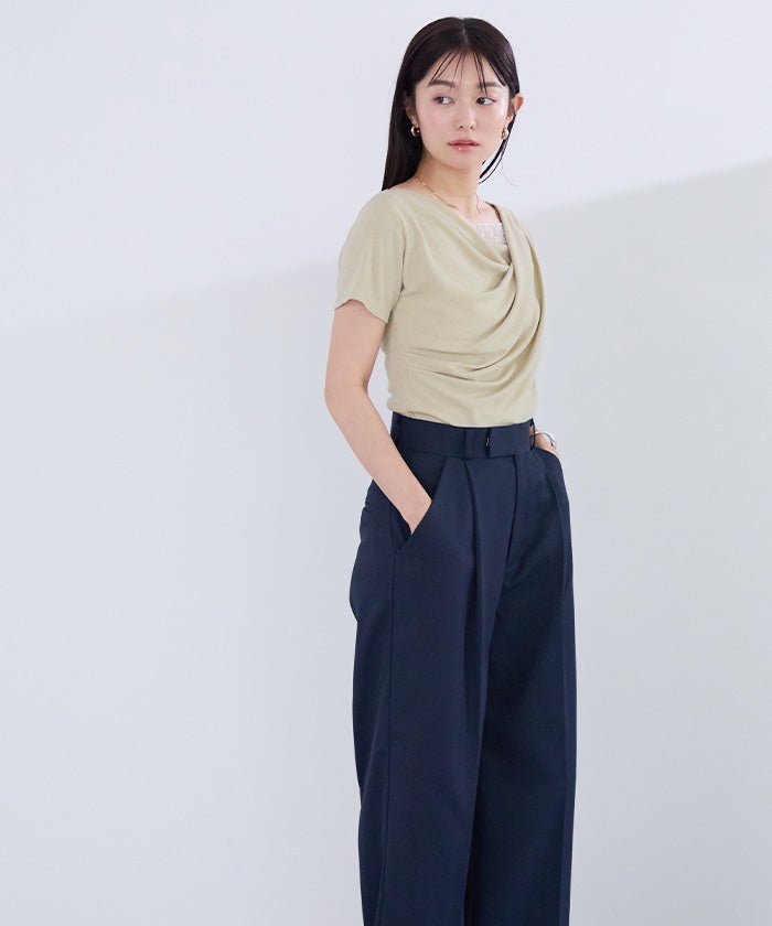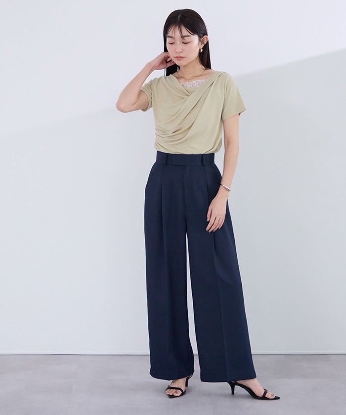 落ち感のあるドレープデザインが女性らしく、抜け感のある印象に仕上げてくれます。